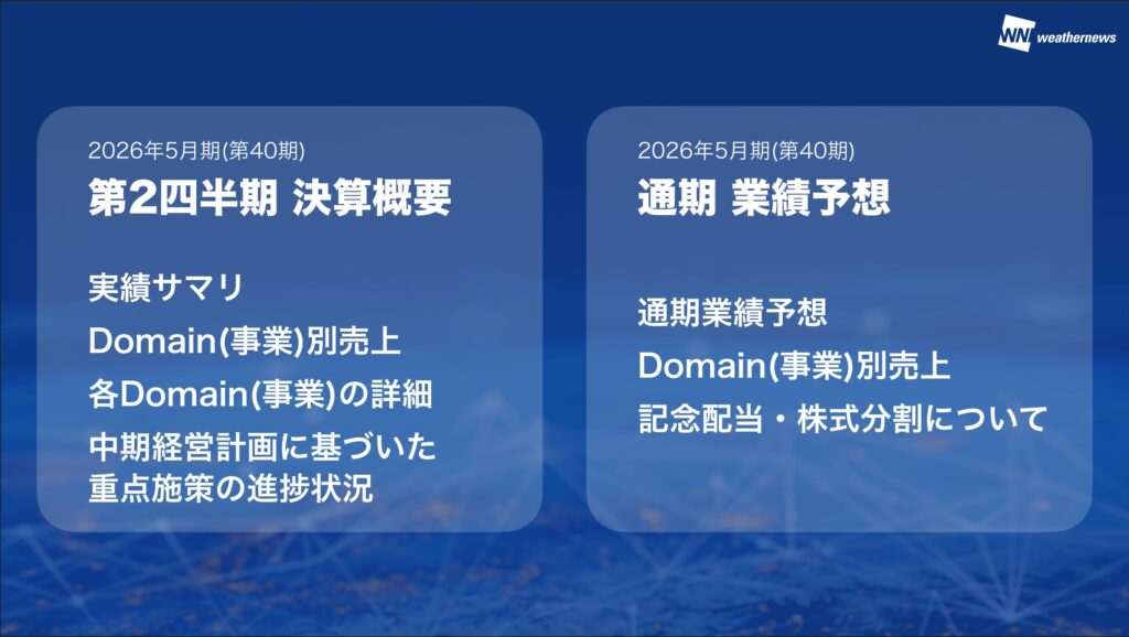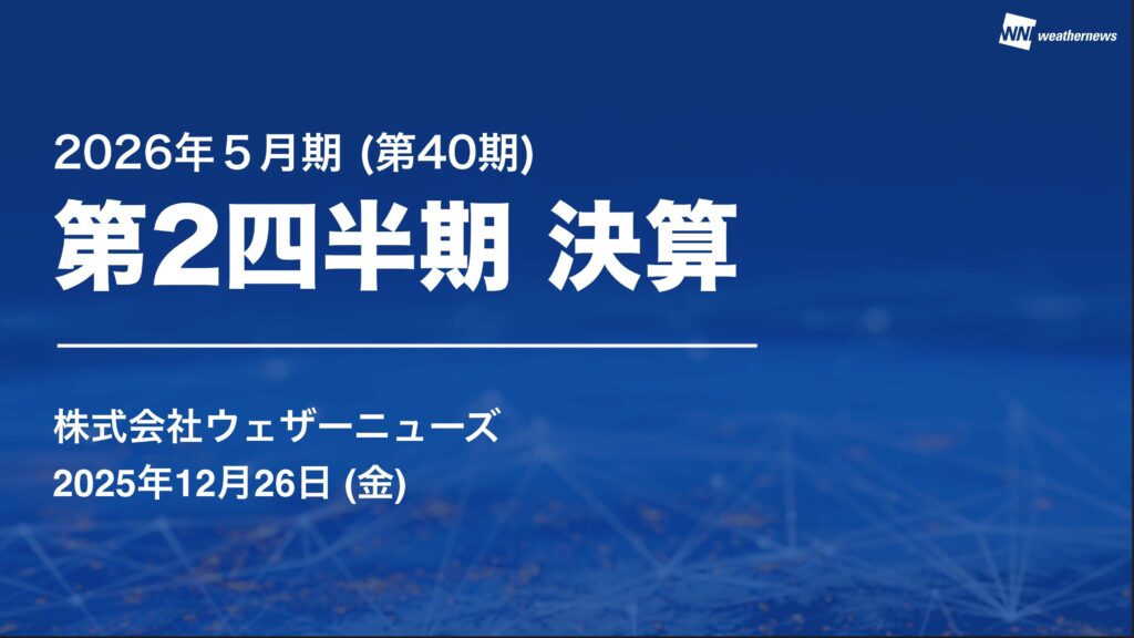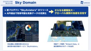 また「WxTech(ウェザーテック)API」というデータ提供サービスも順調に伸びており、顧客数・ARR売上ともに今期の目標を達成できるペースで進捗しております。