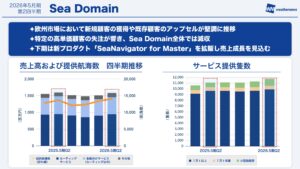 まずSeaドメインです。欧州を中心に新しい顧客が増えており、サービスの提供隻数自体は伸びております。一方で、特定の高単価顧客の失注があったことで売上に関しては微減となりました。この失注に関しては原因も明らかであり、手は打っております。下半期における新しいプロダクトのリリースによって挽回していく計画をしております。