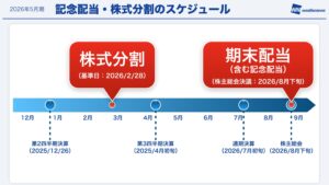 こちらは株式分割および記念配当を含む期末配当のスケジュールになります。