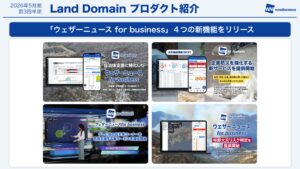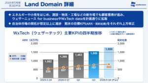 続いてLand Domainですが、こちらは期初のタイミングで「このWxTech(ウェザーテック)シリーズがキーである、具体的にはウェザーニュース for businessなどの新しいサービスがキーである」というお話をさせていただきました。