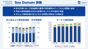 Sea Domainは引き続き欧州市場において新規顧客を獲得しているところでアップセルが堅調に推移しております。特定の顧客を一部ロストした部分もありますが、新しいプロダクトで現在挽回しております。