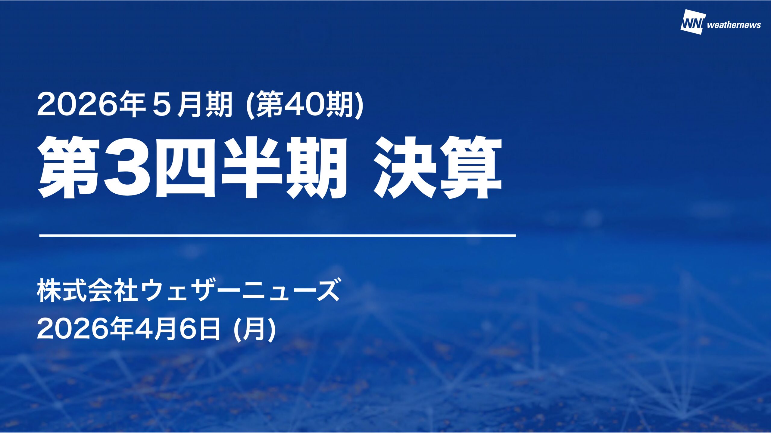 また、放送局様に今使っていただいているウェザーニュース for businessの放送パックという、for businessのPC画面に出ているウェザーリポート、もちろん我々の方で中身を確認したものですが、それをそのままオンエアに使っていただけるサービスです。放送市場向けについてこのようにゲームチェンジしている部分もあり、Q3でこのあたりで大きく進捗がありました。