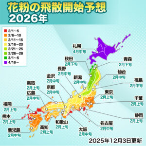 PRESS RELEASE【第二回花粉飛散予想】スギ花粉は2月上旬から飛散開始 飛散量は全国的に平年を上回る予想