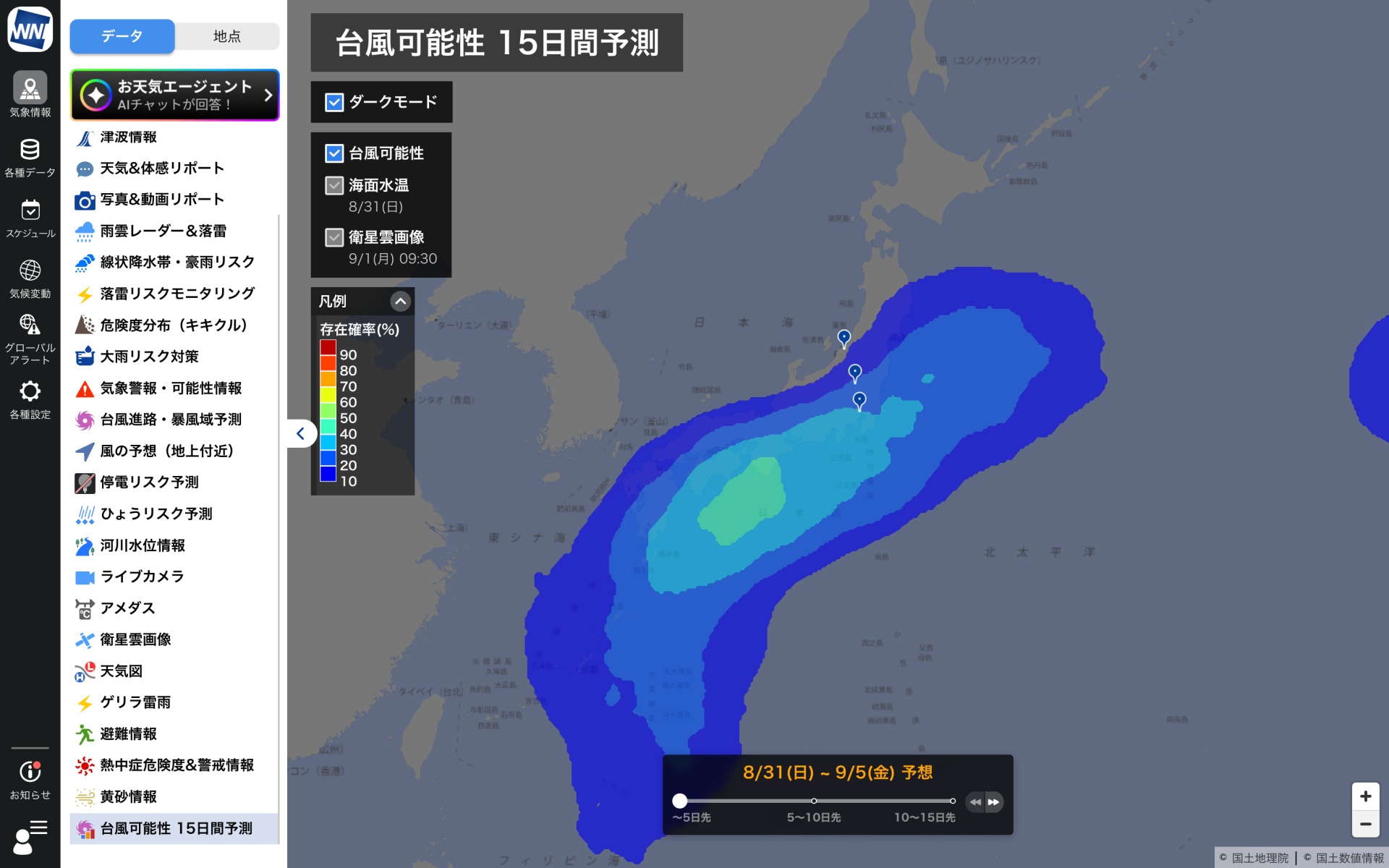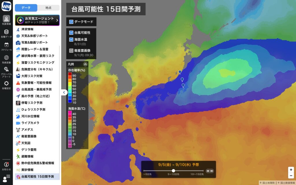 ウェザーニュースProに新機能「台風可能性・15日間予測」を追加、早期対策を支援