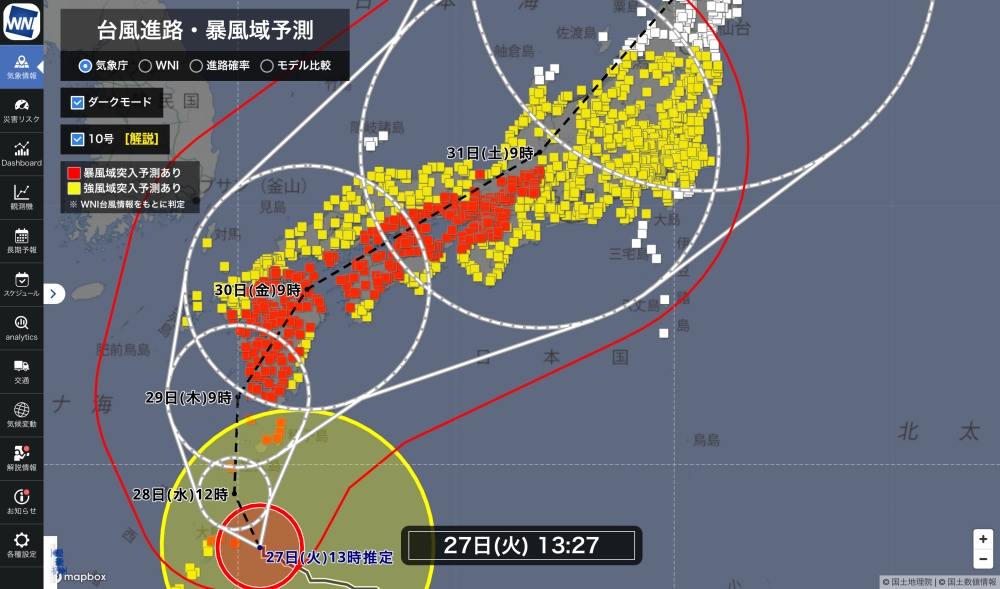 全8種類の台風進路予測や進路確率、最接近時刻、停電リスクなど詳細な台風情報で被害軽減へ
