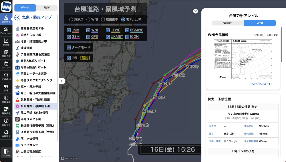 〜全8種類の台風進路予測や進路確率、最接近時刻、停電リスクなどの把握で被害軽減へ〜
