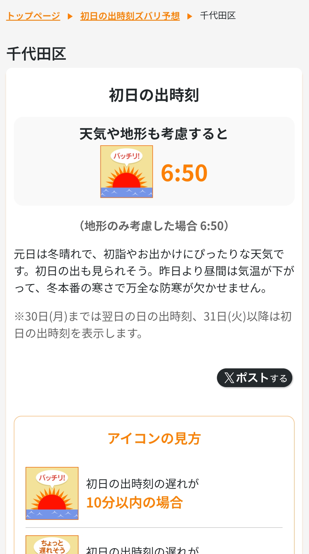 初日の出の見える時刻は何時何分?雲や地形効果を加味した『初日の出時刻ズバリ予想』を提供