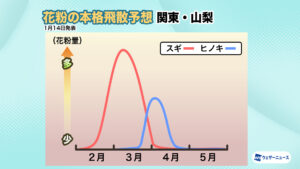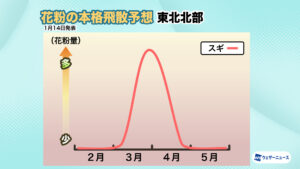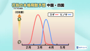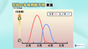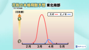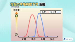 <飛散開始時期:2月上旬から九州北部や静岡、関東南部でスギ花粉の飛散開始>