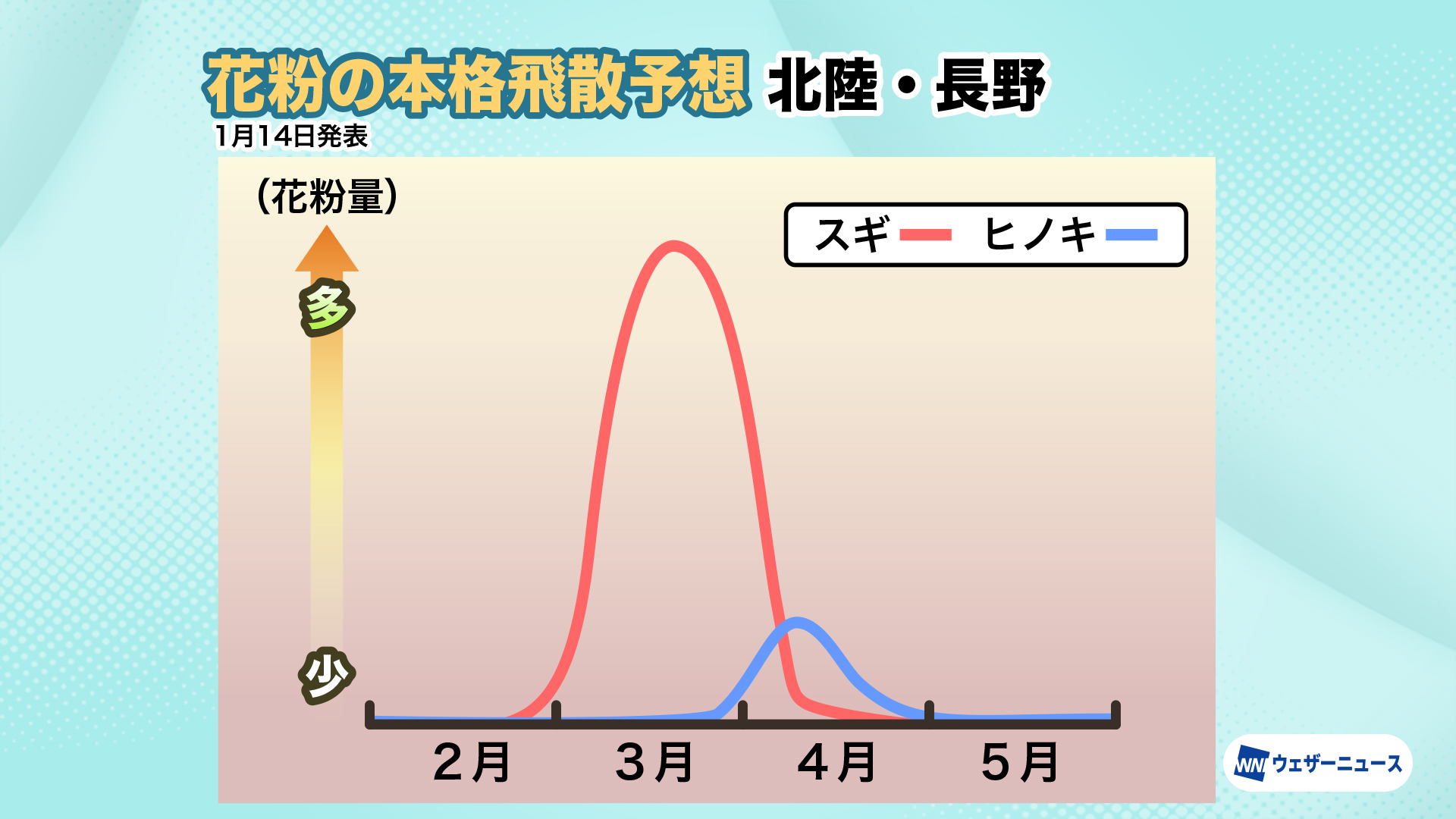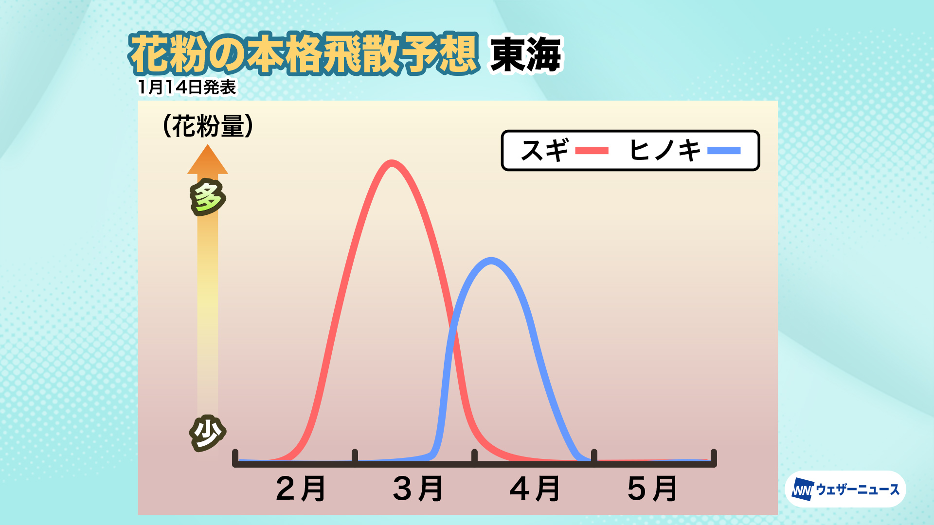 <本格飛散時期:スギ花粉は2月中旬、ヒノキ花粉は3月中旬から本格的に飛散>