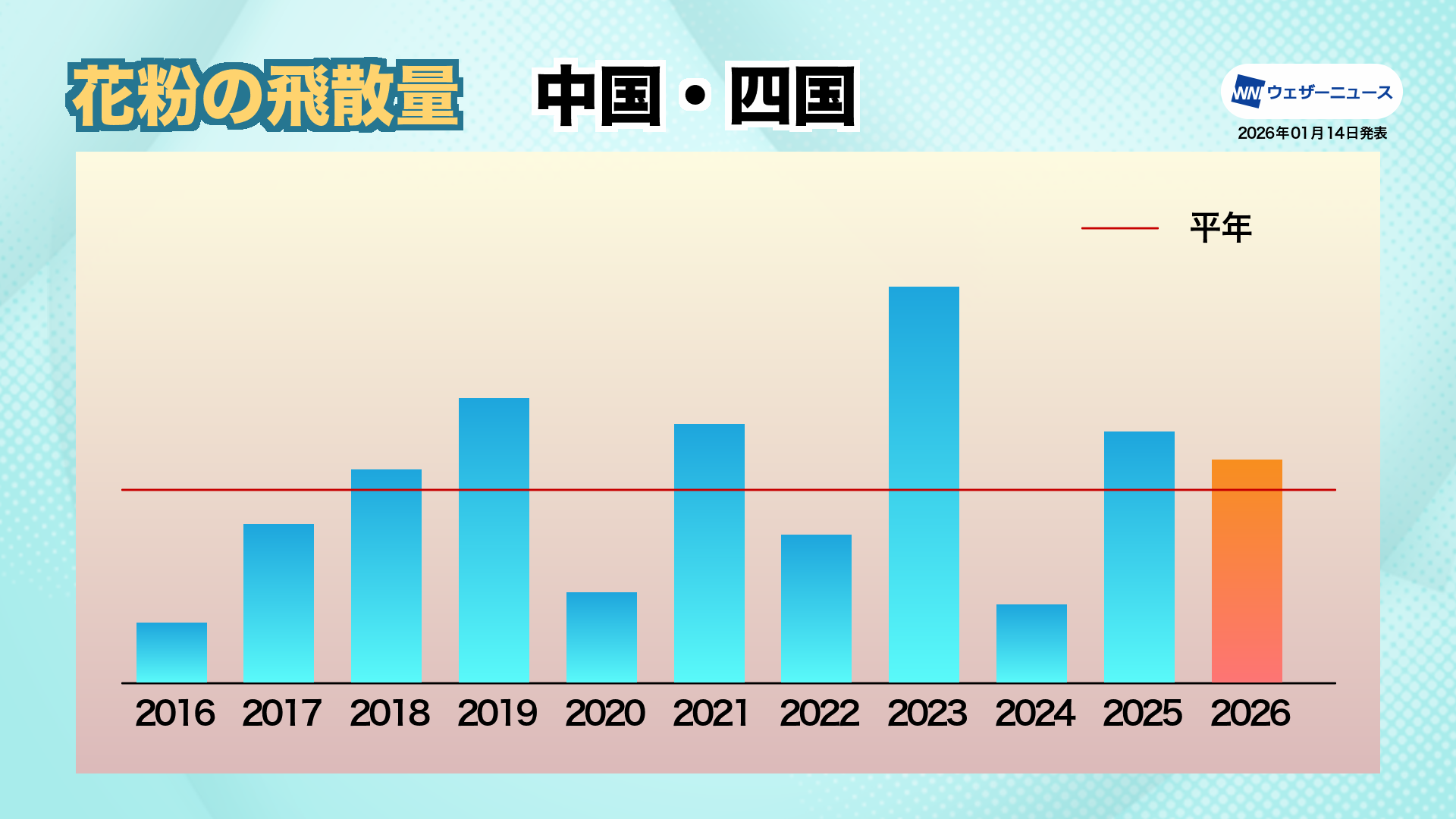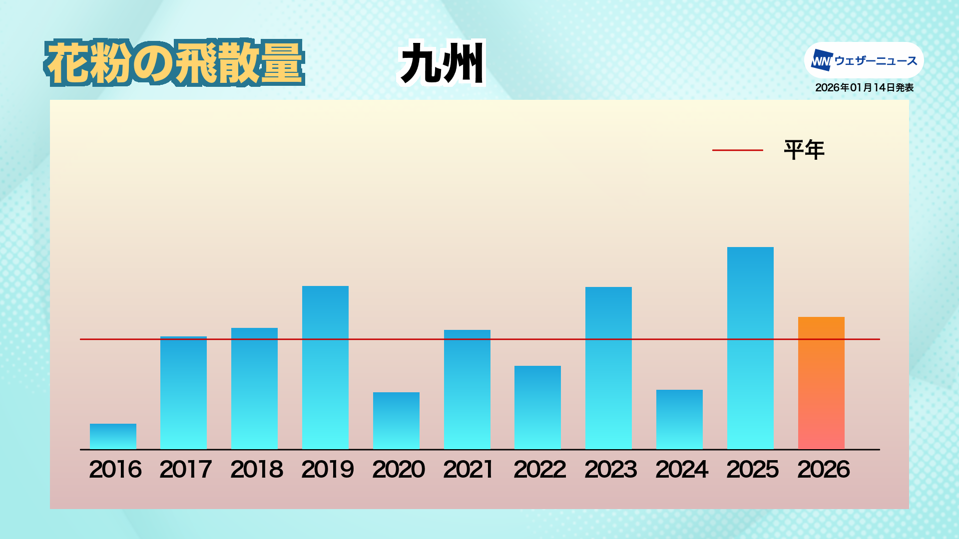 ※平年:天候の平年は1991〜2020年の過去30年平均、花粉飛散量の平年は2016〜2025年の過去10年平均