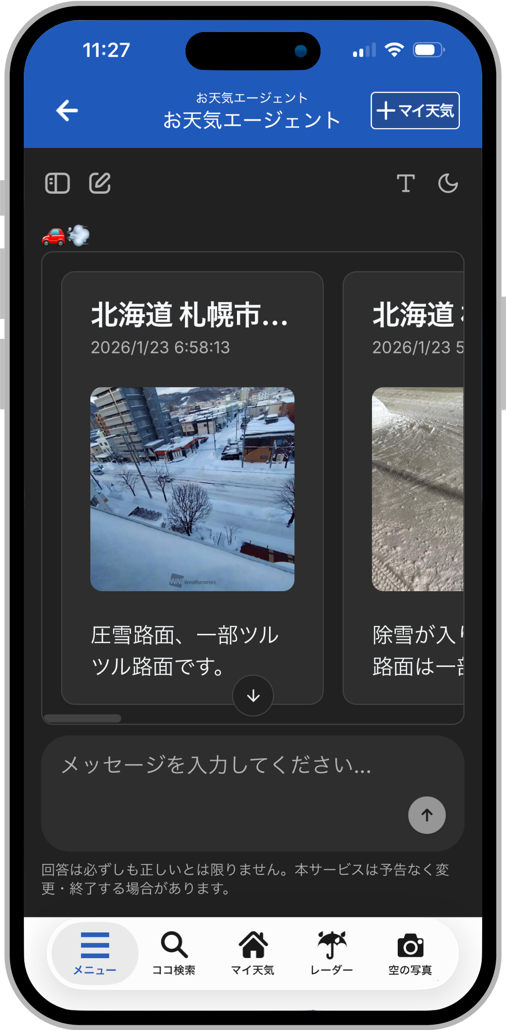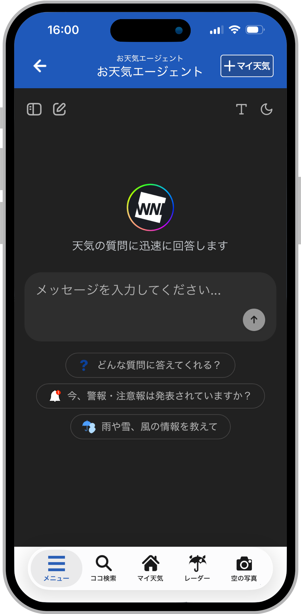 「ウェザーニュース」の対話型AI『お天気エージェント』を全ユーザーへ無料開放