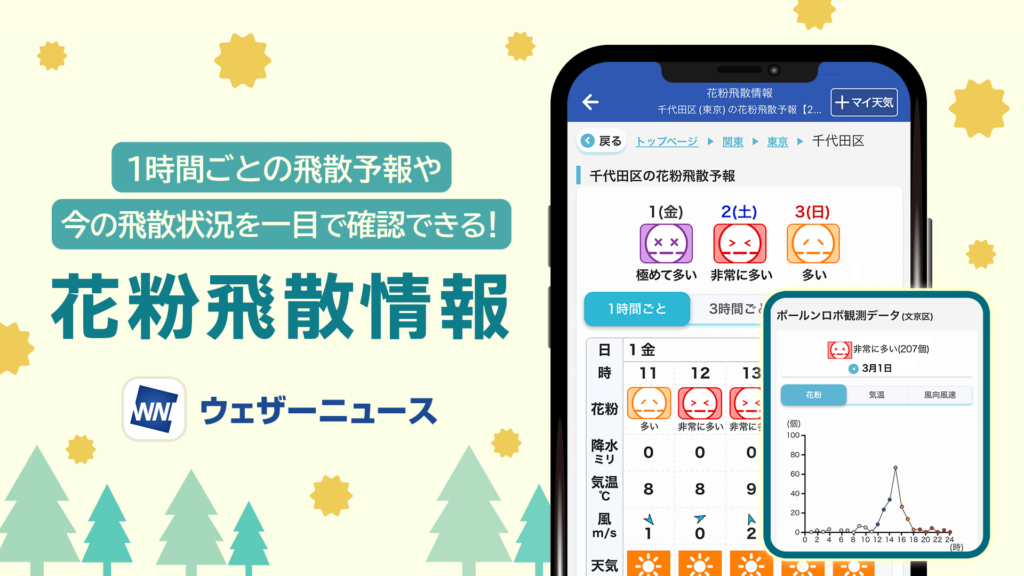 | https://weathernews.jp/s/pollen/ | https://weathernews.jp/app/ |