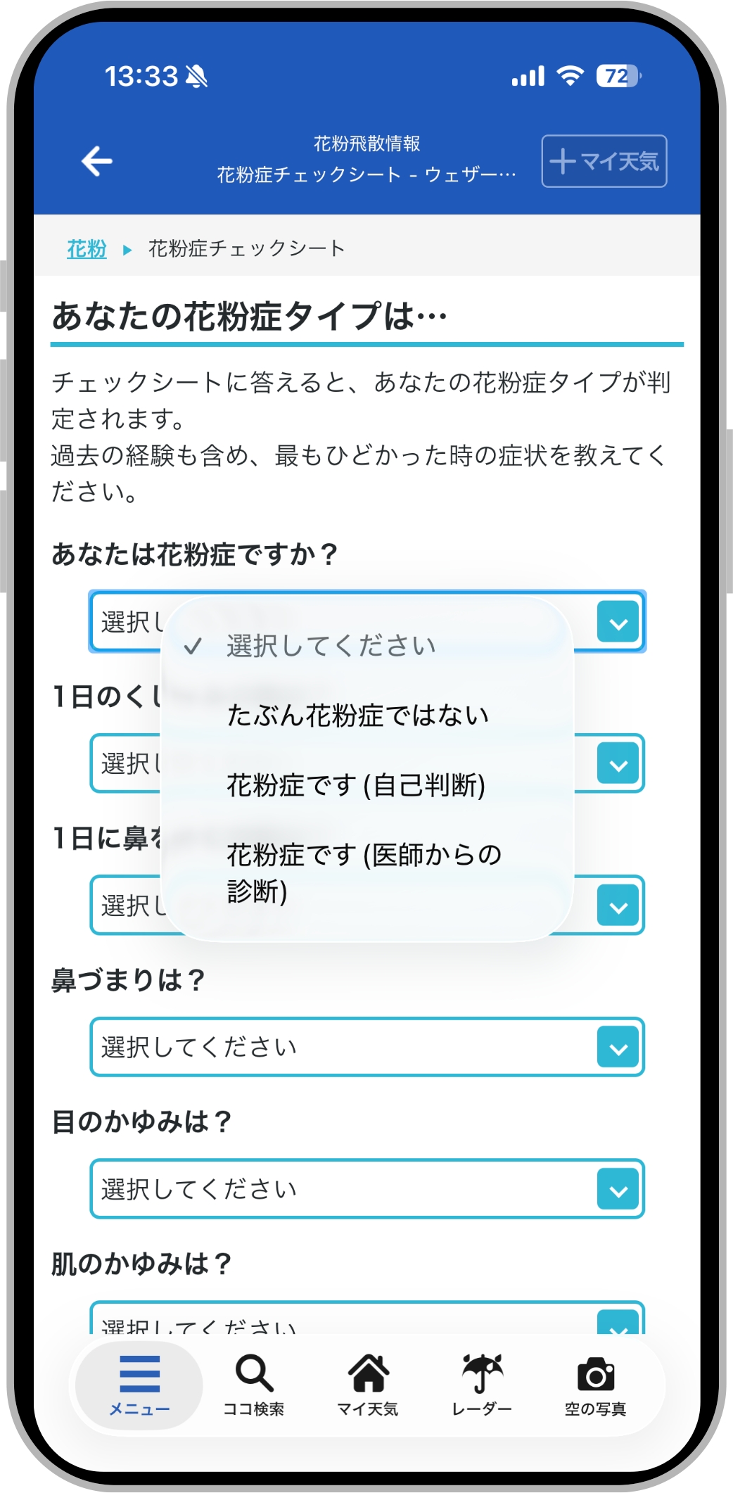 <毎朝の予報から一人ひとりに最適化された『花粉対策アラーム』とあなたの花粉症タイプを無料で即時判定!『花粉症チェックシート』>