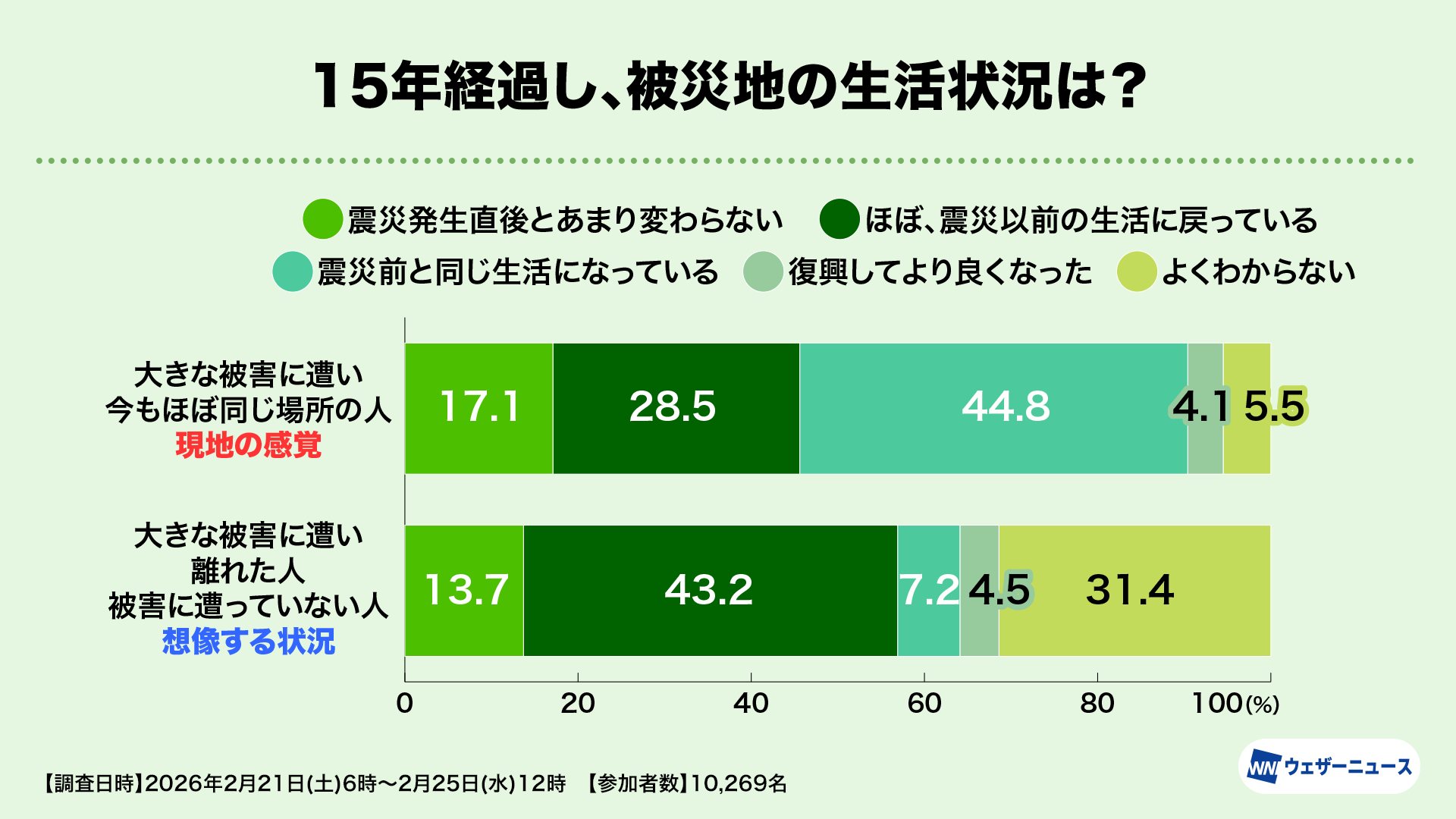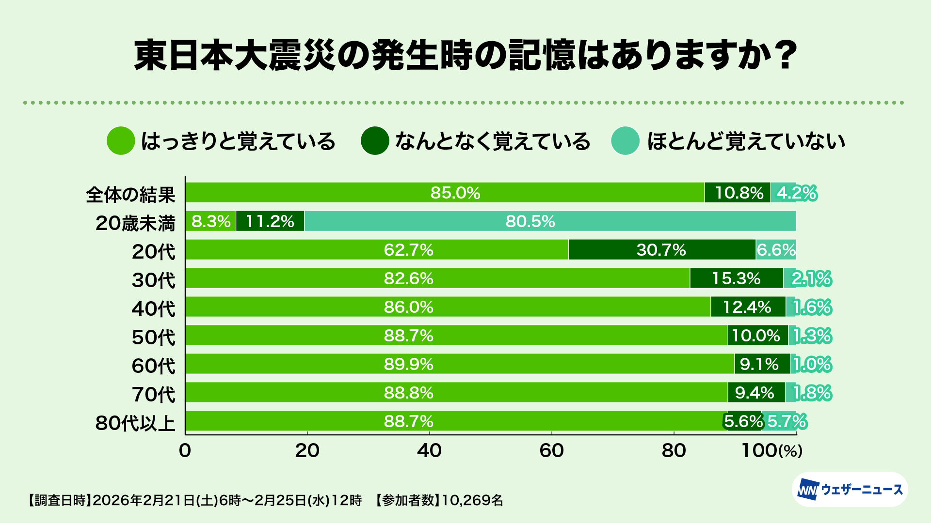 大震災の記憶と認識: https://weathernews.jp/news/202603/020186/