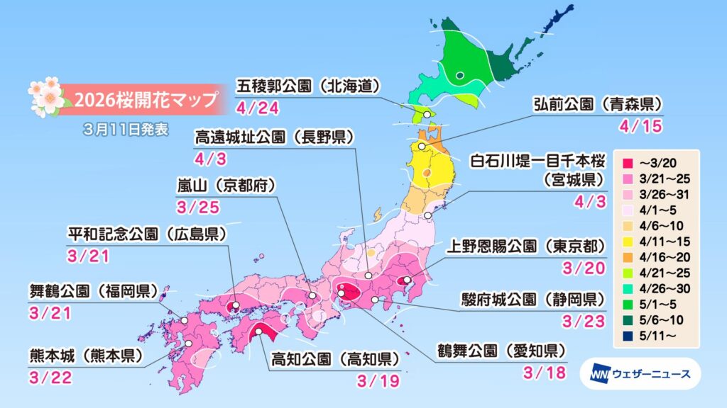 ウェザーニューズ、2026年の「第六回桜開花予想」を発表
