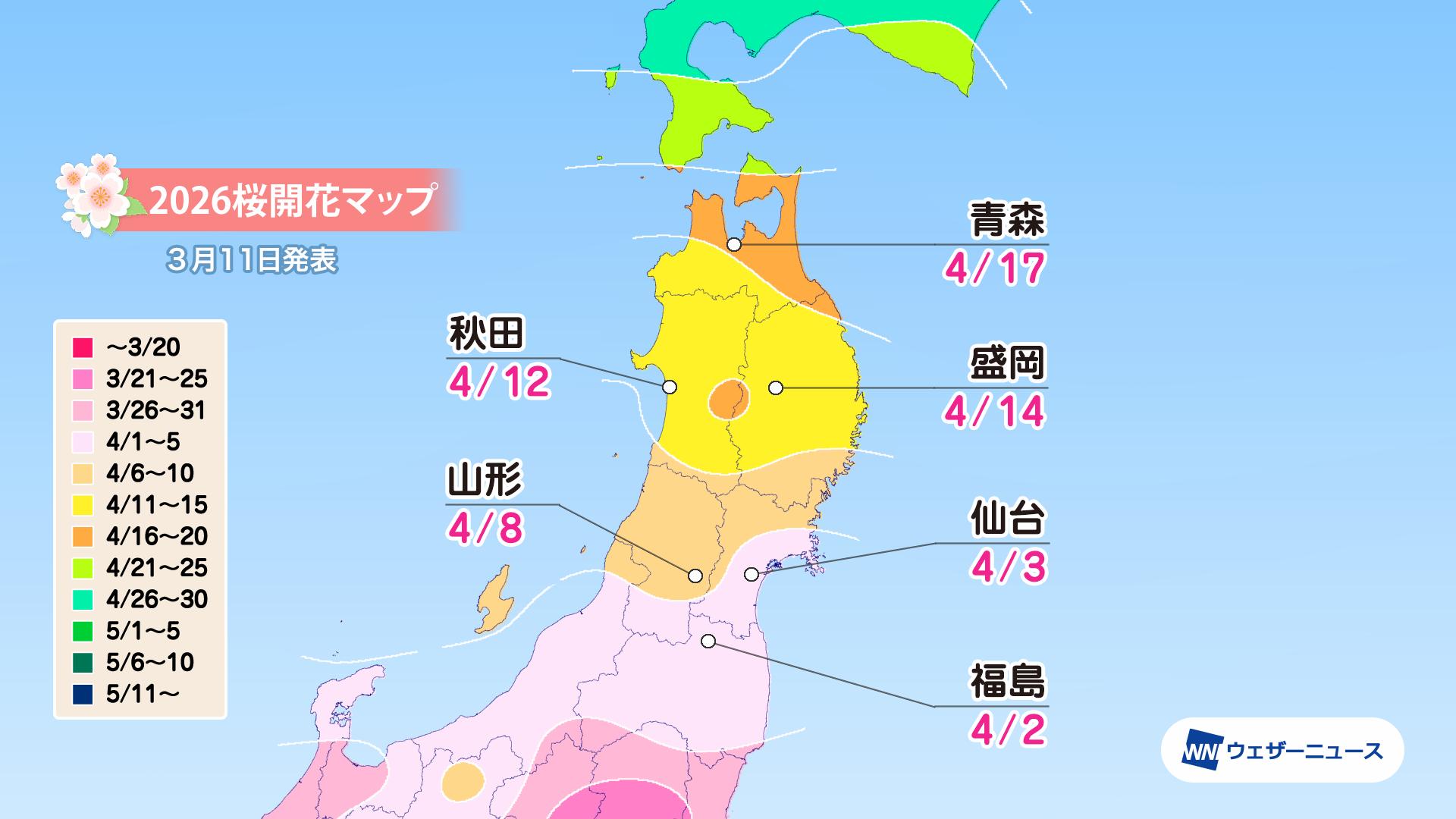 モバイル/インターネット >株式会社ウェザーニューズ(本社:千葉市美浜区、代表取締役社長:石橋 知博)は、「第六回桜開花予想」を発表しました。2026年の桜(ソメイヨシノ)の開花は、西日本と東日本では平年並〜平年より早い、北日本では平年よりやや早い〜非常に早い予想です。