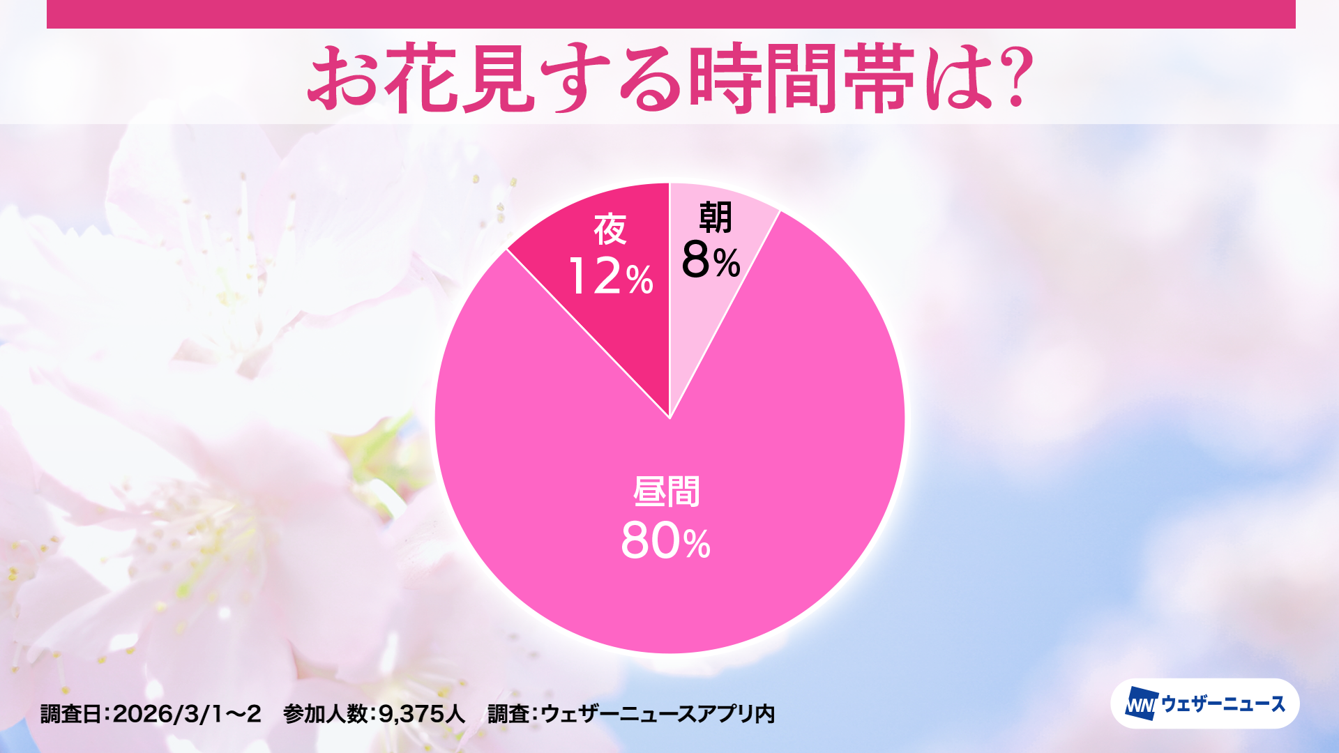 お花見の時間帯は「昼間」が8割