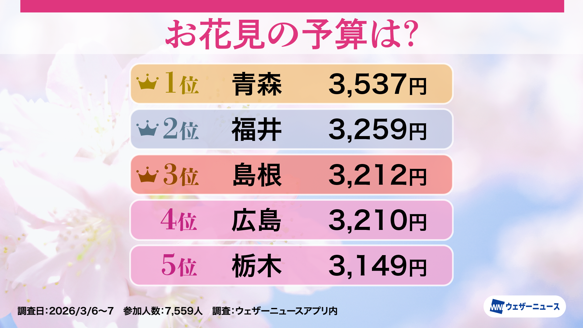 〜お花見予算は平均2,730円、3年連続でコロナ前超え 青森県が4年ぶり首位奪還〜