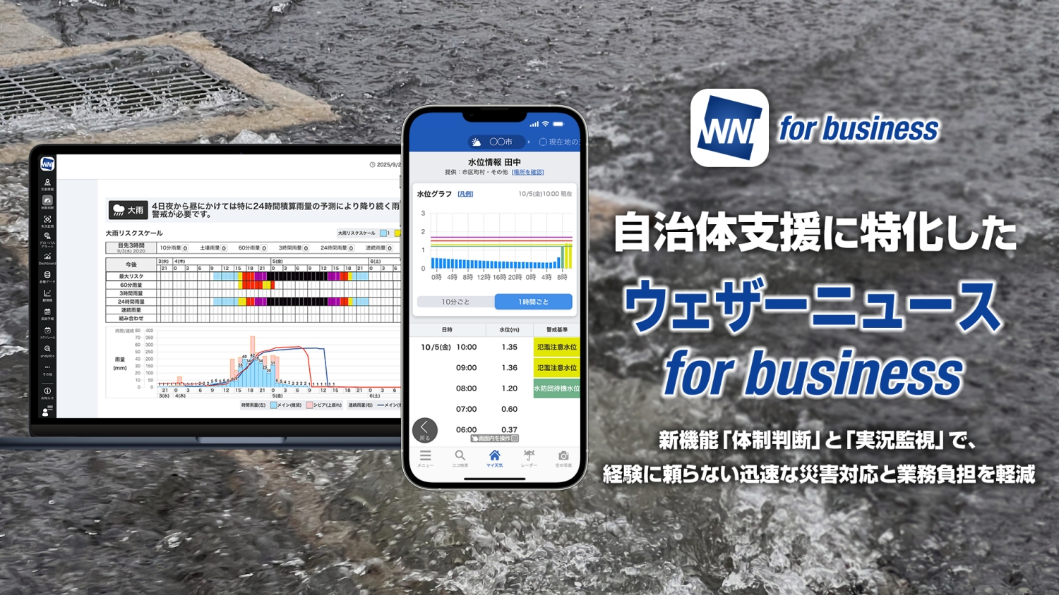 防災気象 >株式会社ウェザーニューズ(本社:千葉市美浜区、代表取締役社長:石橋 知博)は、地方自治体の防災業務支援に特化した、法人向け気象情報「ウェザーニュース for business」の提供を本日より開始しました。