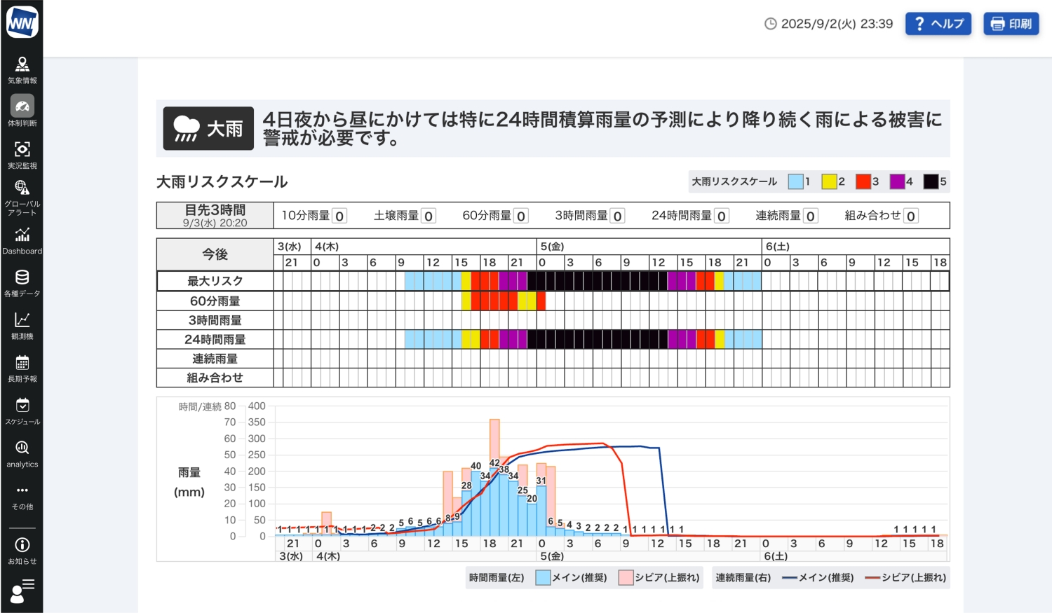 「体制判断」で72時間先までのリスクスケールを確認