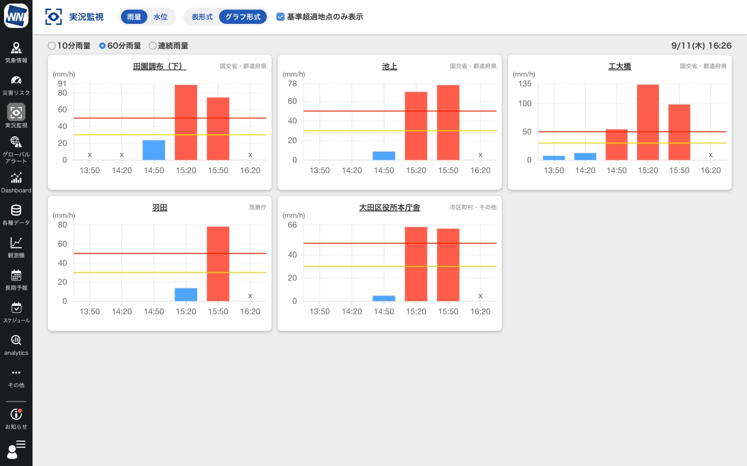 危険度が高まっている地点を即座に把握できる「実況監視」