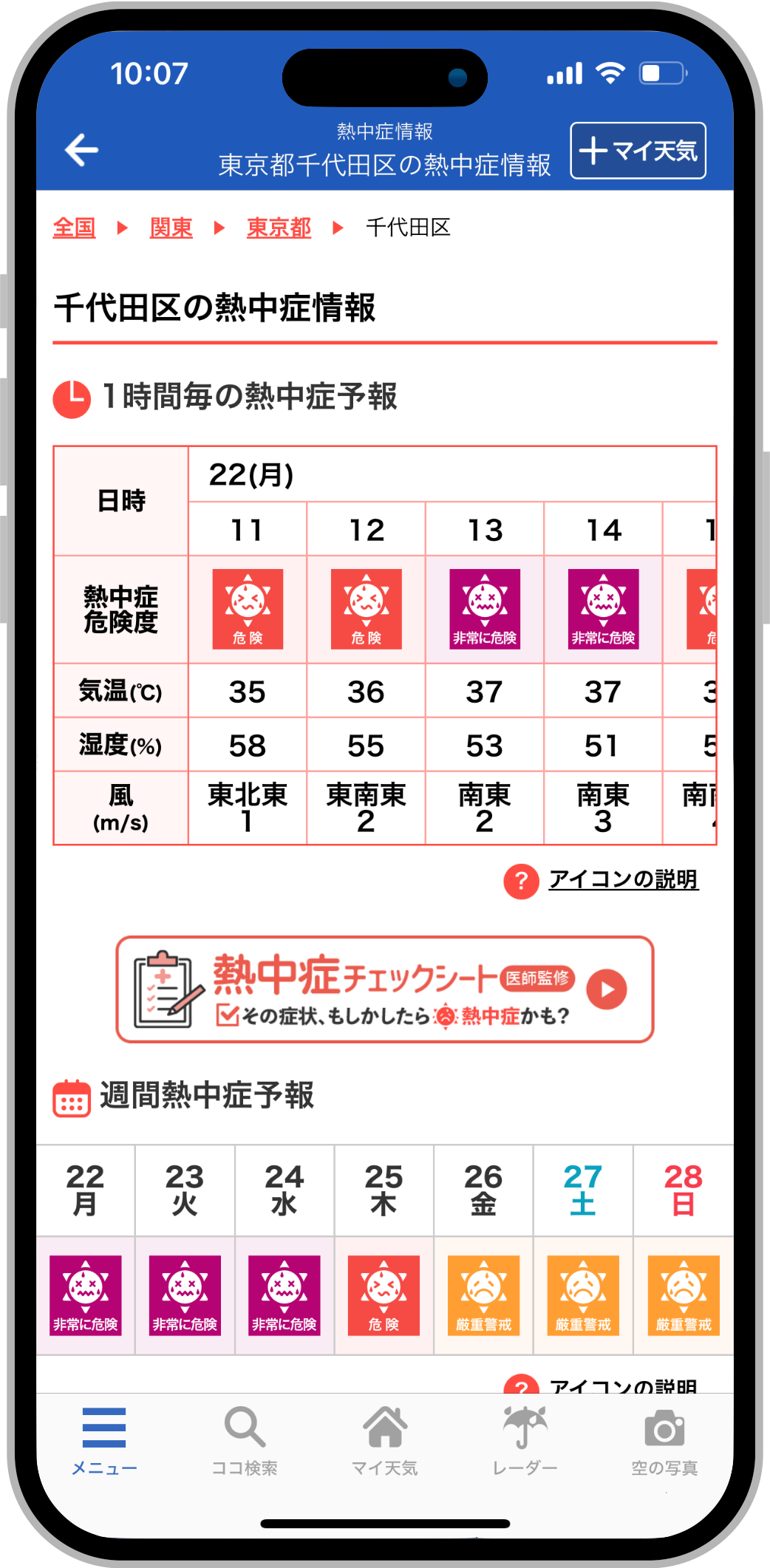 〜危険な時間と場所が詳細にわかる「熱中症情報」〜
