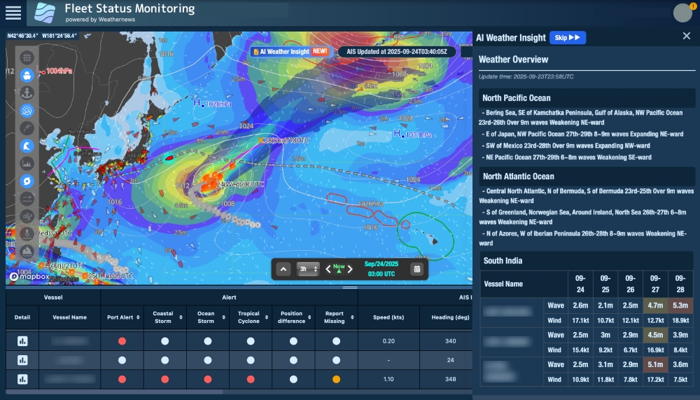 ・AIが気象・海象見解の自動生成や荒天影響船を自動抽出する「AI Weather Insight」