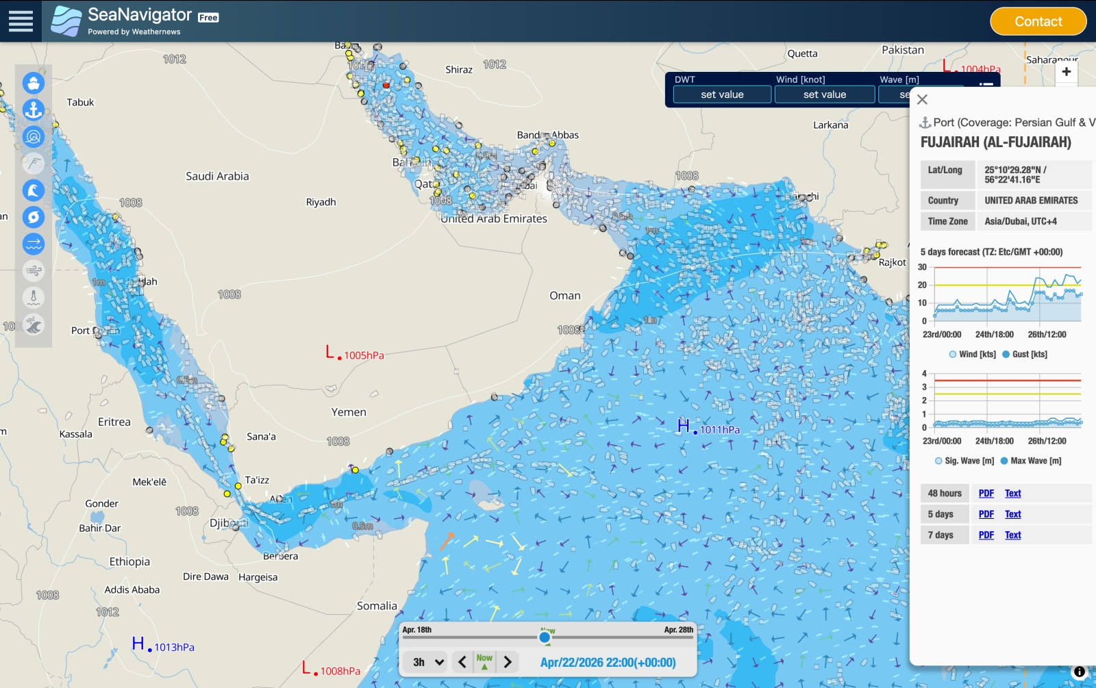 中東海域の船舶・海象情報、航海気象サービス「SeaNavigator」で無料公開