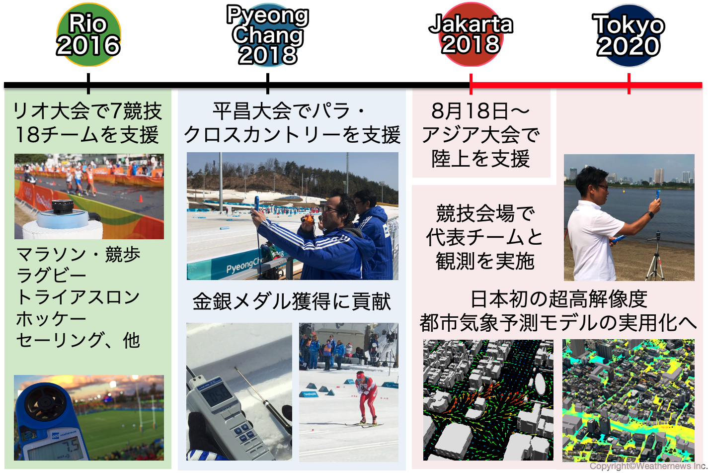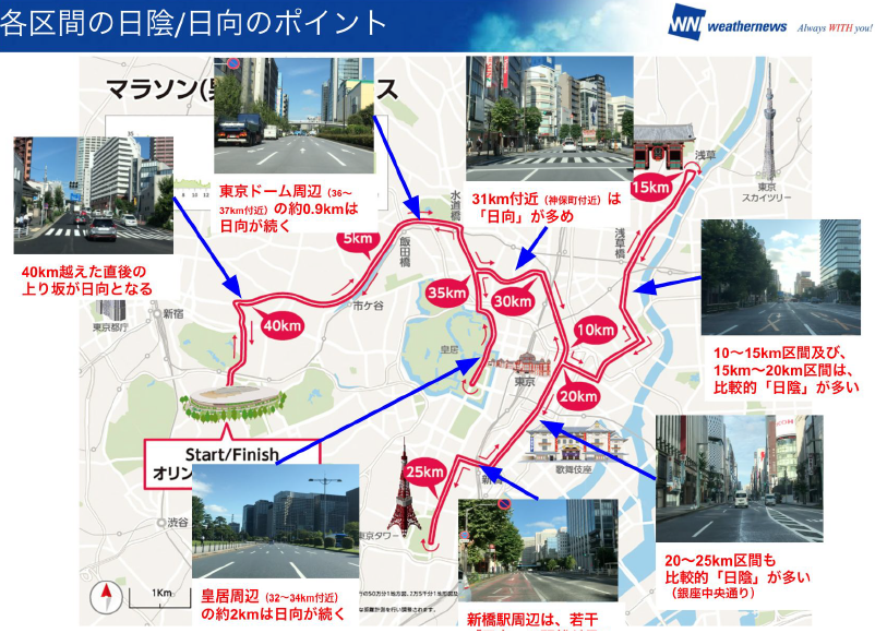 "天気を味方に"する代表的な天気予報の活用事例が「スポーツ気象」という価値です。例えば、マラソンは日射、気温・湿度、風向・風速など様々な気象条件下で競技をするスポーツです。これらの気象条件を分析し、詳細なデータを事前に把握することで、想定内のコンディションや天気を活用した戦略で競技に臨むことができます。また、昨今のゲリラ豪雨の発生や熱中症リスクの高まりといった選手の安全にかかわる様々な気象リスクへの適応策においても、スポーツ気象の価値は発揮されます。