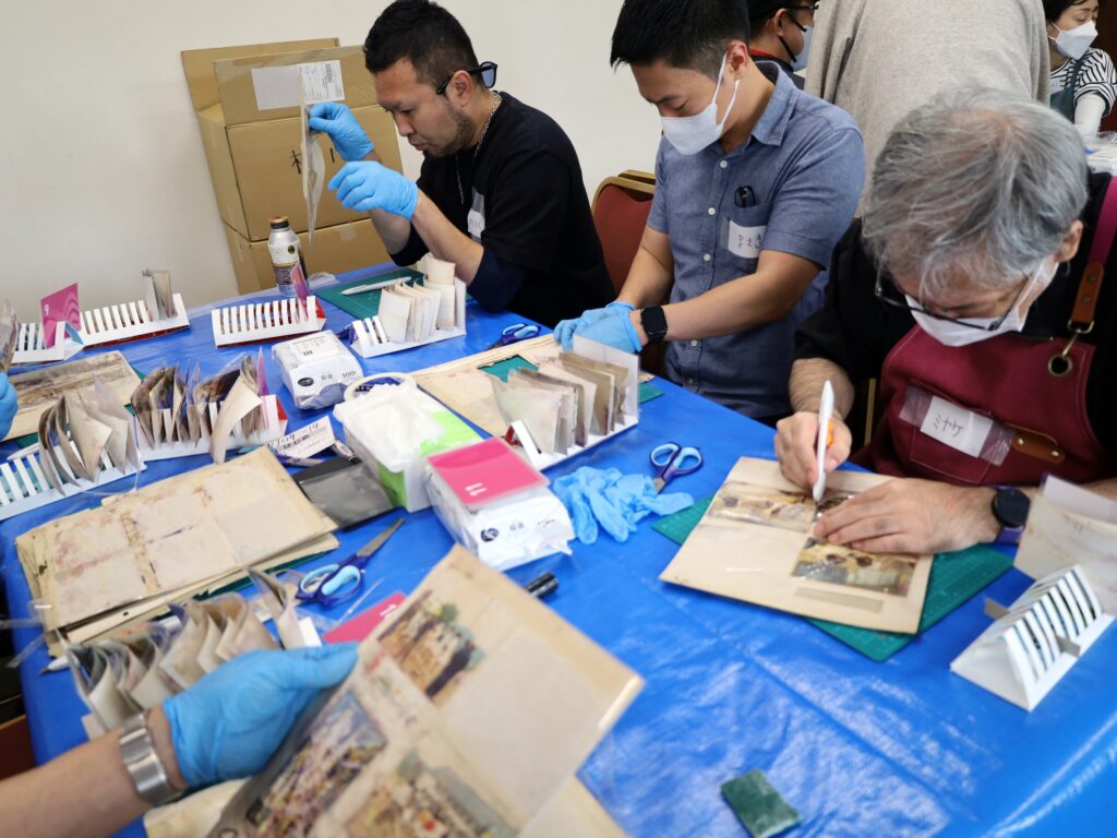 当日は日本教育会館にて、1日を通して能登半島から届けられた大切な思い出の写真を、一枚一枚丁寧に手作業で洗浄・復元しました。まずは、アルバムに貼り付いた写真を慎重に剥がし、必要に応じてカットします。次に、泥や汚れを優しく取り除き、水や専用の洗浄液を使い写真をきれいにします。そして、湿気を取り除き、写真が変形しないように適切な方法で乾燥させます。最終仕上げでは、エタノールで表面を拭き取り、清潔に整えます。復元された写真は新しいポケットアルバムに丁寧に収納し、思い出として再び写真アルバムが完成します。洗浄した写真は、9〜10月頃に持ち主の元へと届けられる予定です。
